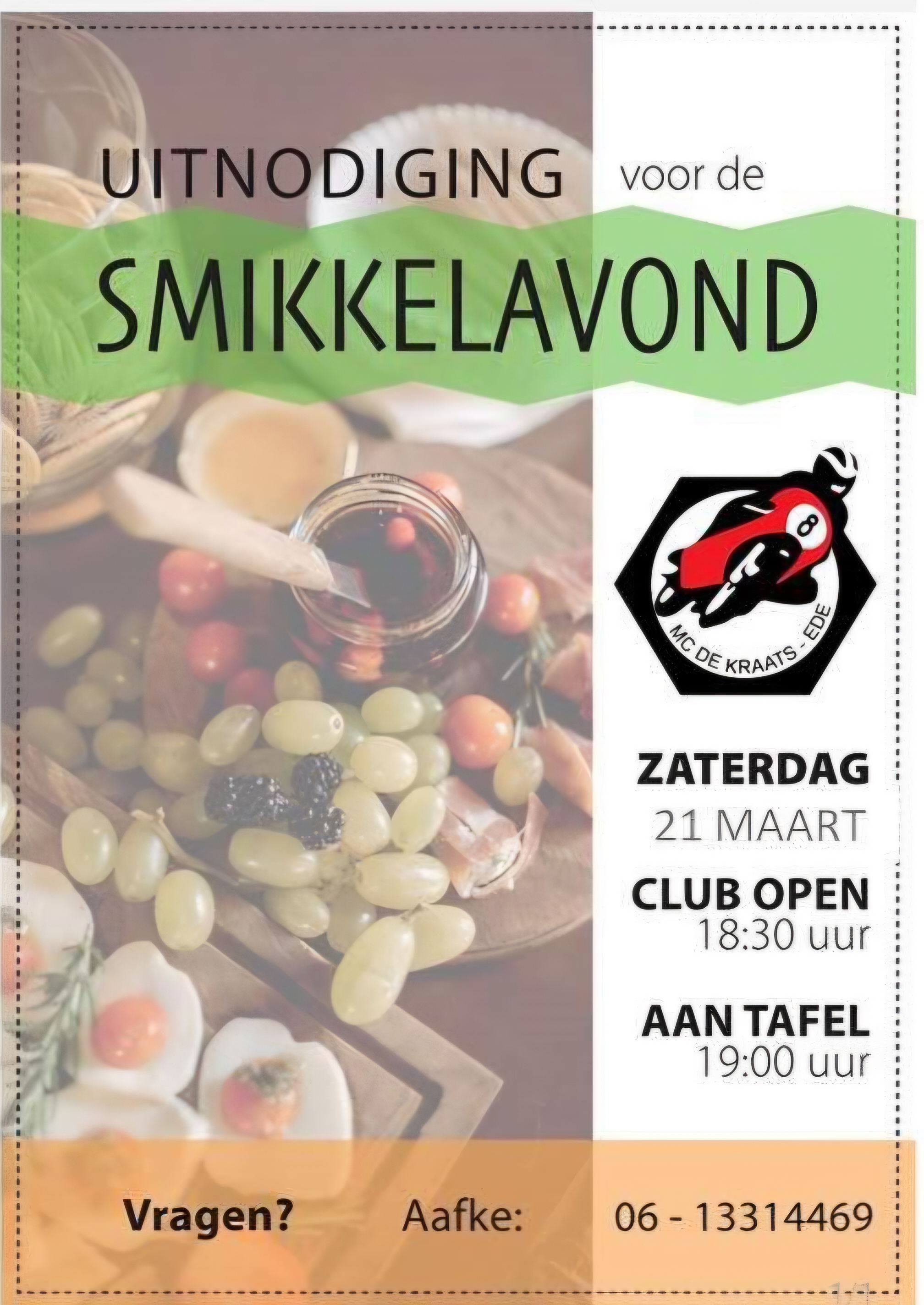 - Smikkelavond- koken door en voor leden. 2026: nog niet bekend.